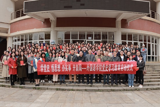 3月23日下午,外国语学院在文科楼A100圆厅学术报告厅举行党史学习教育启动仪式。学院党政班子成员以及全院师生党员、发展对象共计200余人参加仪式。仪式由专职组织员汪功伟主持。