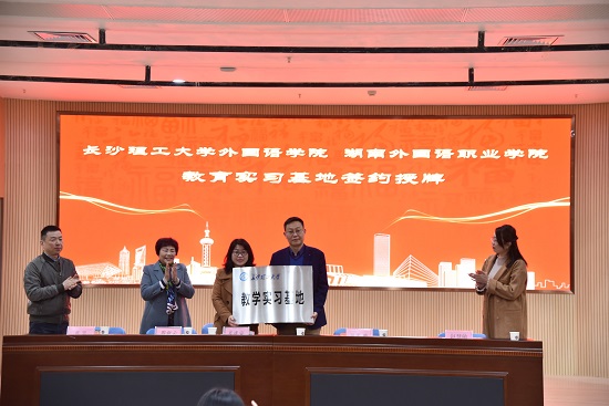 为促进伟德betvlctor1946源于英国英语专业人才培养和学生教育实习,2021年3月22日,伟德外国语学院院长段胜峰教授、副院长黄坚教授、外国语言文学系主任胡伟副教授和副主任姚尧博士一行赴湖南外国语职业学院,举行教育实习基地签约与挂牌仪式。