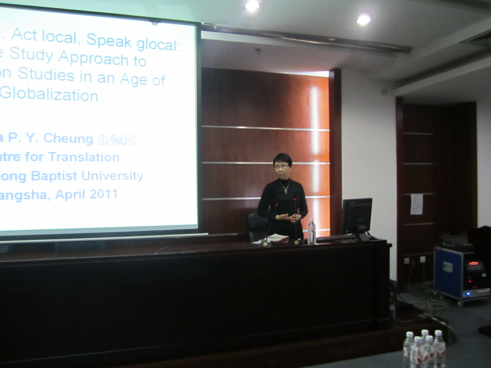 2011年4月14日下午三点半,在云塘校区图书馆报告厅B-102,应我院邀请,香港浸会大学张佩瑶教授做了题为“Think Global, Act Local, Speak Glocal: A Case Study Approach to Translation Studies in an Age of Globalization”的讲座。张佩瑶教授为香港浸会大学协理副校长、翻译中心主任、博士生导师。张教授此次讲学是“伟德betvlctor1946源于英国外国语言文学海外名家系列讲坛”的第二位邀请专家。讲座由外语学院院长潘卫民教授主持。