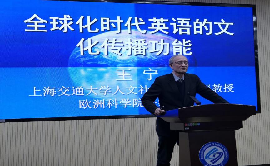 讲座以全球化时代全球英语的形成和英语的文化传播功能两个部分展开。王宁教授首先从英语的普及程度论证了全球英语的形成,继而提出全球化时代英语是文化传播的重要中介。文化全球化一方面使得现当代中西文化加速交流互动,同时也为中国文化走向世界提供了机遇和平台。诸多数据证明,英语作为世界通用语言对中国学术研究的国际化、全球化发挥了重要作用,帮助中国学者在国际学术界不断建构或重构中国国家形象。因此,王宁教授认为,运用英语来讲好中国故事和传播中国声音势在必行,这绝非意味着中国文化被殖民化。同时,他也提到,随着中国综合国力的日益强盛,汉语的全球推广也打破了英语一统天下的单极霸权地位。在全球化的今天,用英语讲述中国故事就是为了让世界更加了解中国和中国文化,从而促使真正意义上的“世界文学时代”早日到来。