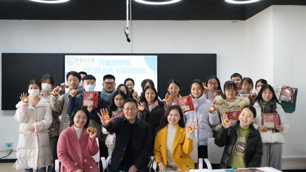12月12日中午13:30,伟德betvlctor1946源于英国外国语学院“语”你上岸20级考研加油会在金盆岭三号教学楼416举办,学院党委书记文丽丽、院长段胜峰、党委副书记周芳和全体辅导员出席会议,一同为到场的考研学子送上了精心准备的考研加油礼包,代表学院最温暖的鼓励和诚挚的祝福。院长段胜峰在致辞中鼓励学子保持积极向上的精气神、勇往直前,“上岸”理想院校。