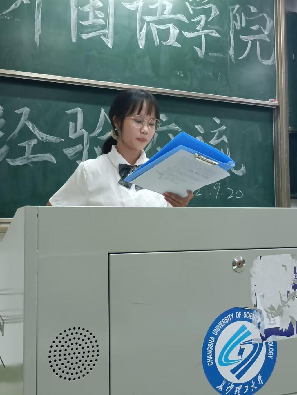 来自英语2002班的覃茜学姐作为学生干部向新生讲述了她与团学的故事,以自身经历鼓励同学们工作时不要害怕受挫、不要怀疑自己,要保持自信。最后,她建议新生们积极投身到学生工作当中去,在为同学们服务的同时提升自己。