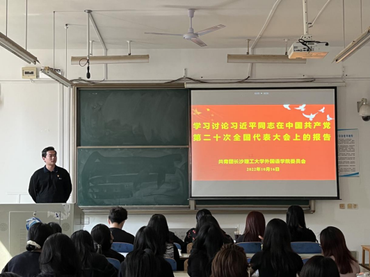 10月16日上午,学院组织全体学生党员、学生干部分别在云塘校区文科楼A603、金盆岭校区9教407、金盆岭校区6教206教室集中收听收看中国共产党第二十次全国代表大会开幕会,认真聆听习近平总书记代表第十九届中央委员会向大会所作的报告。
