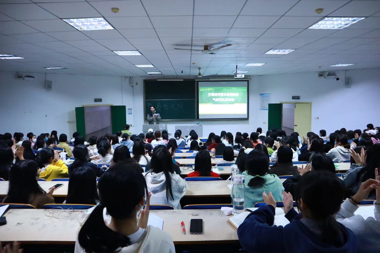 为进一步增强校园文化氛围,增强学生文明礼仪知识,培养学生良好的行为习惯,11月17日晚,外国语学院在金盆岭校区6教208举办外国语学院女神训练营“气质与礼仪”专题讲座,校团委副书记杨晨主讲。此次讲座由外国语学院辅导员陈若晨主持,院团委书记武巧琳和外国语学院200余名本科生与研究生参加。