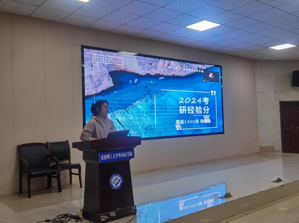 大会期间,两位学姐依次分享成功经验与成长感悟。现场气氛活跃轻松,反响强烈。陈昭涵学姐从前期准备、开始备考、高效备考、心态调整四个版块进行考研经验分享和总结,干货满满。她就自身考研历程为现场同学们提供借鉴,如找准自身节奏、定期复盘、可视化学习、给予积极心理暗示等。学姐最后补充道:“考研路上,勇气、底气和运气缺一不可。其中,底气是靠自己脚踏实地、一步一步积攒出来的。”