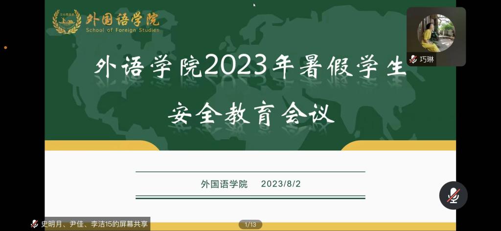 暑假过半,为进一步加强学生安全教育,8月2日我院组织留校学生于9教406开展安全教育会议。会议由学院副书记周芳主持,全体辅导员参加,未在校学生线上同步学习。