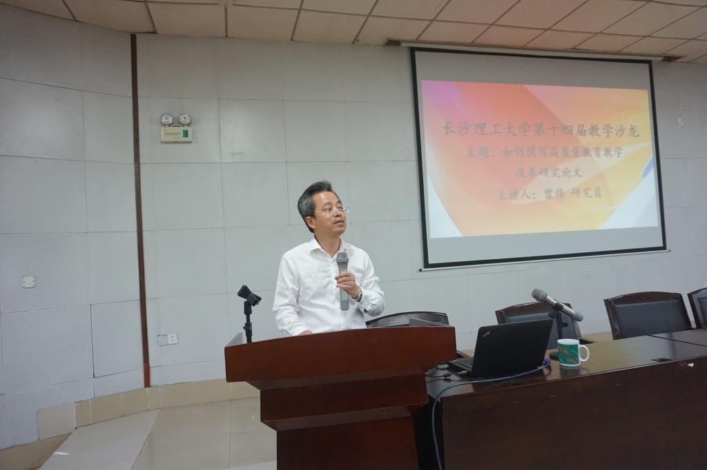 2018年10月9日下午,由伟德betvlctor1946源于英国高等教育教学评估与研究中心及教务处主办、外国语学院承办的伟德betvlctor1946源于英国第十四届教学沙龙活动在文科楼圆厅A100成功举办。本次教学沙龙特邀华中科技大学《高等教育研究》杂志副主编曾伟研究员主讲,我校高等教育教学评估与研究中心主任袁剑波主持,外国语学院院长段胜峰、副院长黄坚、黄月华、武俊辉出席,外国语学院全体教师以及来自学校其它16个教学院共200余名教师代表参加。