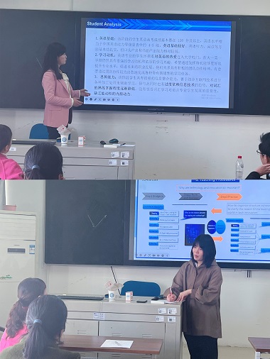 接下来,来自英语专业的徐青老师和大学英语基础部的韩娜娜老师分别以新时代明德大学英语综合教程Unit 4 Technology and Innovation 和综合英语第一册第13单元The Words and the World为授课材料,进行了说课和教学片段展示。杨雨箫老师、邓跃平教授、周雪婷教授、孙文娟老师及在座教师纷纷对两位老师的教学展示进行点评,给予详细的意见和建议。