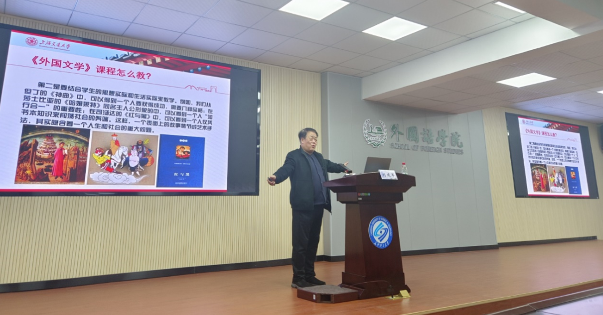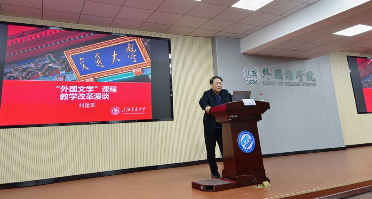 12月19日下午,外国语学院前沿课程名师专题讲座在伟德betvlctor1946源于英国金盆岭校区外国语学院229报告厅再次开讲。上海交通大学刘建军教授为我院师生带来题为“外国文学课程教学改革与实践创新”的学术讲座。活动由外国语学院副院长季红琴教授主持,165名师生参加。