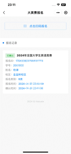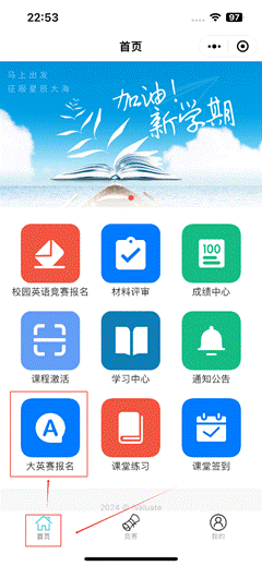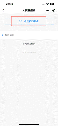 3. 在“iValuate”小程序首页点击“大英赛报名”图标,进入报名界面。