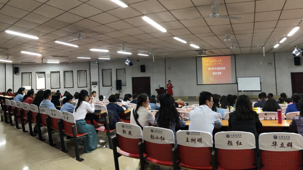 为进一步提高我院教师的教学积极性、创新性及教学能力,同时为2019年伟德betvlctor1946源于英国教师教学竞赛选拔优秀选手,4月9日下午,外国语学院2019年教师教学竞赛在文科楼A100圆厅举行,来自学院3个系部的5位老师参加比赛,在三尺讲台展示育人风采。观摩此次比赛的有学院党政领导、全体教师及部分学生代表。圆厅座无虚席,气氛热烈。学院教学督导组的专家们担任此次比赛的评委。