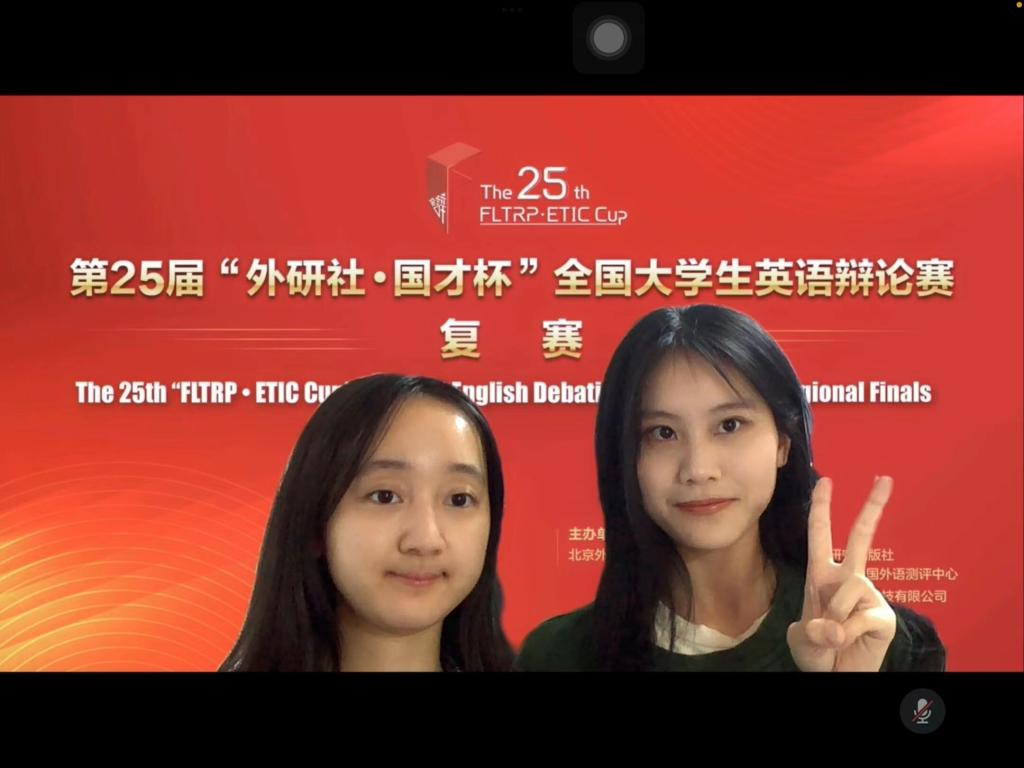 本届华南地区复赛共有来自福建、广东、广西、贵州、海南、江西、云南、湖北、湖南以及港澳台地区的104支高校队伍代表参赛。本次比赛通过线上方式进行,全程采用双机位,并设定了严格的比赛规则和程序,保证了比赛公平公正进行。在王浩萍老师指导下,由伟德外国语学院翻译2002班刘志洋同学和陈祉姗同学组成的代表队,经过五轮积分赛和决赛,最终夺得华南赛区一等奖,成功晋级全国决赛。伟德选手在比赛中发挥出色,展示了缜密的逻辑、流利的表达、默契的配合和广博的知识面。