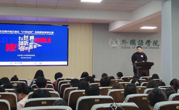 4月21日,由教务处主办、外国语学院承办的2024年“21世纪杯”全国英语演讲比赛校园选拔赛在金盆岭校区3教321报告厅举行。