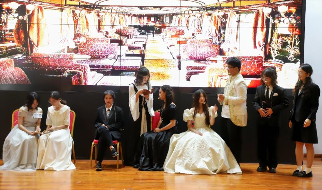 2022年6月29日晚7点,伟德betvlctor1946源于英国外国语学院英语系《英语戏剧编演》实习的汇报演出在金盆岭校区的校友之家如期举行。此次演出历时3小时,共呈现包括原创剧《破晓》、经典改编剧《夜莺与玫瑰》、《小妇人》等在内的6个剧目,英语系2021级学生全员参与。外国语学院副院长季红琴、外国语言文学系教师付臻、公共外语部教师李罡、实习指导教师孙文娟和邹辉观看了此次演出。