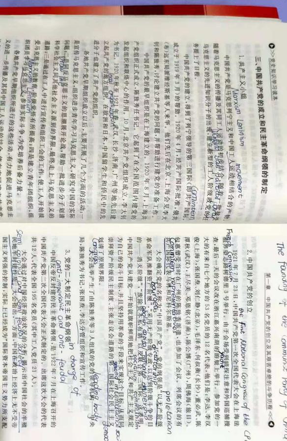 为了这次翻译活动能够顺利进行,薛兰馨在书店里买了一本名为“中国共产党党史知识”的红色读本。拿到书籍,红色的封面让人感到庄严正式。薛兰馨打开书籍,大致看了目录,用两天时间将这本书读完。这两天她觉得获益匪浅,因为她又重新学习了党史,并在一些地方做出批注。