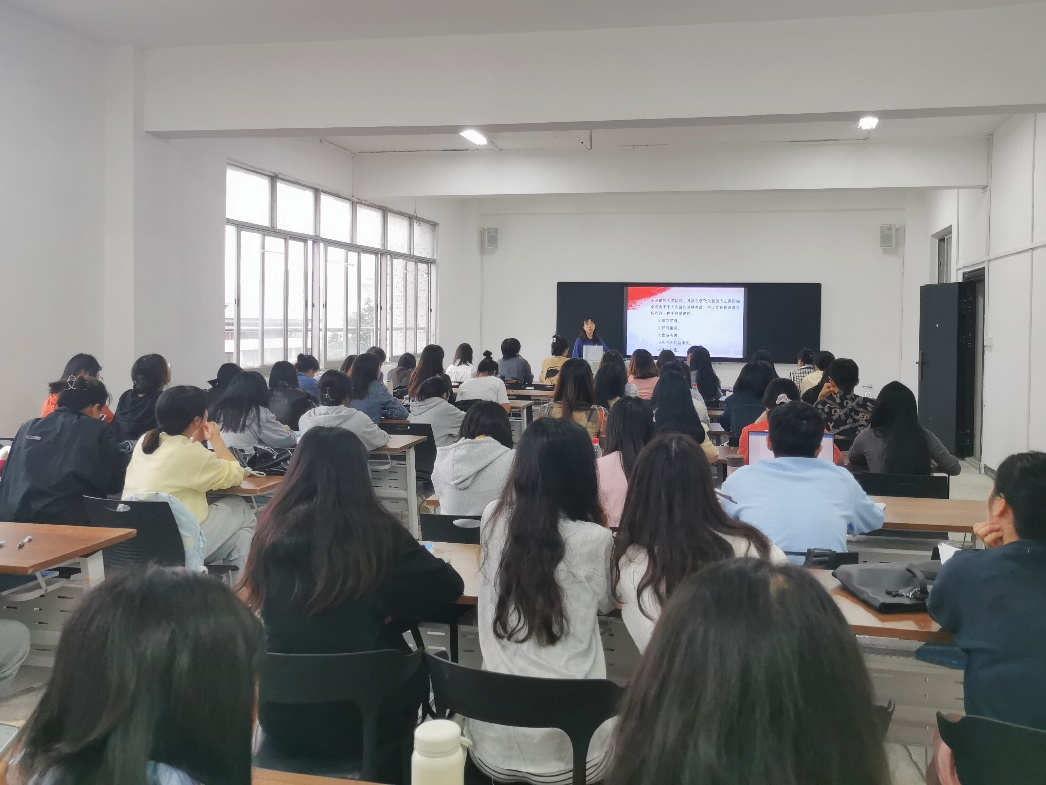 首先,朱慧雯围绕“入党的动机”、“中国共产党员的条件”、“入党的要求”、“入党的程序”四个方面对新生进行入党思想启蒙。在讲述“入党的程序”时,朱慧雯结合自身实际经历,自己入党的初心和历程,通过标准模板与事例具体介绍了入党申请流程,如何撰写入党申请书及要求,生动形象的为同学们介绍了从提交申请书到发展对象再到预备党员的教育考察和转正的过程,让同学们对入党条件、程序有了更加清晰的认知。