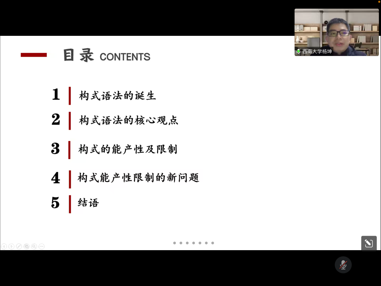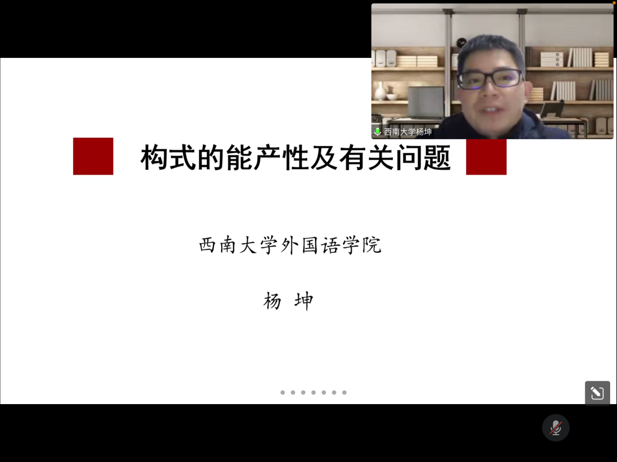2022年12月13日晚,西南大学外国语学院杨坤教授应邀为伟德第十八届博力学术论坛 “翻译生态与生态翻译”专题论坛做了题为“构式能产性及有关问题”的讲座。外国语学院部分导师及全体研究生参加了本次讲座。