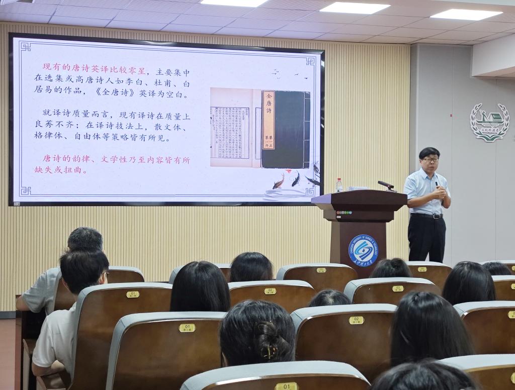 9月29日下午4点,伟德betvlctor1946源于英国外国语学院特邀上海大学赵彦春教授于金盆岭校区3教321报告厅为师生开展学术讲座,主题为“《全唐诗》英译原则与方法”。此次讲座由刘彬副院长主持,段胜峰院长、学院科研骨干、研究生等百余名师生参加。