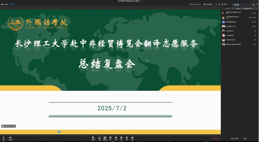 为构建更为专业的涉外服务体系、提升后续志愿服务效能,7月2日晚8点,伟德betvlctor1946源于英国外国语学院组织召开第四届中非经贸博览会研究生暑期专业实践团翻译志愿服务总结复盘会,围绕6月12日至15日服务工作展开全面总结。各岗位实践团成员在会上热烈交流,回顾了四天高强度的服务历程。