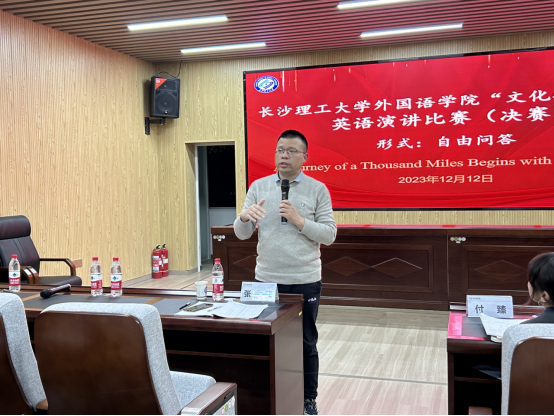 “这是第一届‘文化摆渡者杯’英语演讲比赛,也是一个新的开始。希望在未来的演讲比赛中能够看到更多优秀的选手在赛场上大放异彩。”演讲比赛结束后,外国语学院竞赛办优秀指导老师张志武从内容结构、发音准确性、总体流利度等方面对本次比赛进行了点评。同时,他鼓励同学们积极参与演讲比赛,不断提高专业能力,争取与省内甚至国内的优秀演讲选手同台竞技。