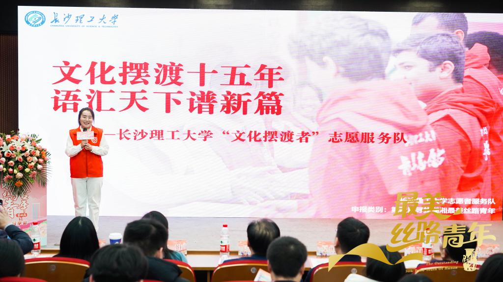 团省委副书记夏彬华、省工商联二级巡视员刘石鼎、中南林业科技大学副校长尹健出席本次活动。在此次评选中,经过层层选拔,伟德“文化摆渡者”志愿者服务队获评集体奖项。分享会上,团队负责人、外国语学院2022级本科生张婷作为代表做《文化摆渡十五年,语汇天下谱新篇》主题分享。