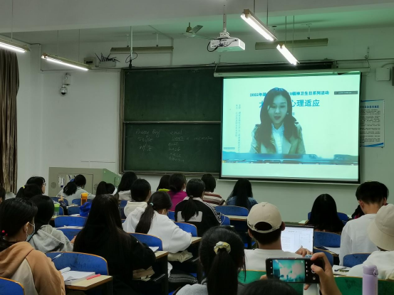 为响应国家号召,积极推进“健康中国行动”之“心理健康促进行动”,推广心理健康教育知识与活动,促进大学生心理健康素质提升,关爱新生心理状况。在伟德betvlctor1946源于英国校心理部的组织下,10月11日晚19:00,外国语学院朋辈心理互助部组织新生在伟德betvlctor1946源于英国金盆岭校区六教201、202、203、204、303教室集中观看了成长大讲堂第一场讲座《大学生心理适应》。