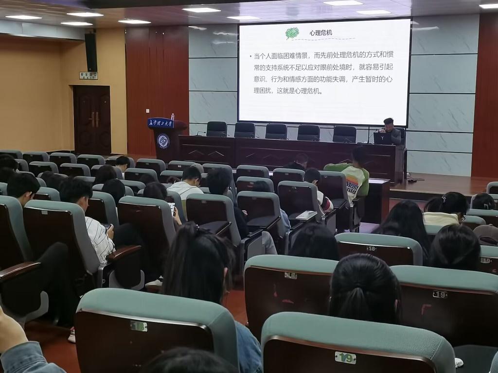 2023年4月22日,为进一步提升朋辈互助员工作效能,外国语学院联合法学院、建筑学院于4教报告厅开展第三次朋辈互助员线下培训。本次培训的主题为大学生心理问题的识别与处理,由建筑学院郭恒老师主讲,外国语学院22级朋辈互助员积极参加。