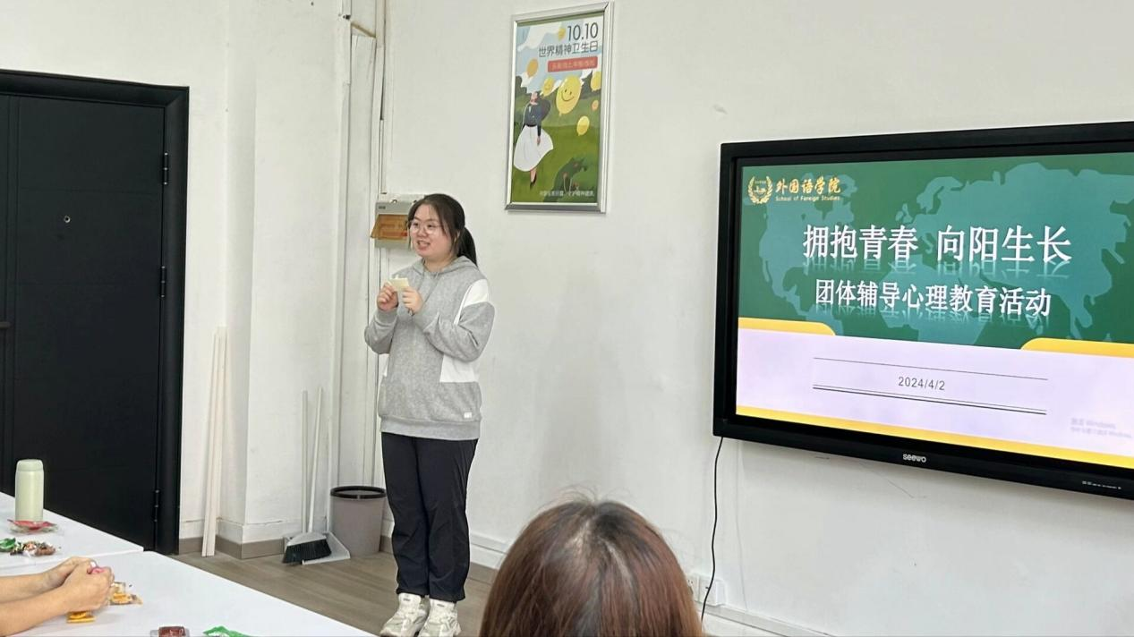 为帮助同学们缓解焦虑,更加阳光自信,伟德外国语学院朋辈心理互助部于2024年4月2日下午在三教团辅室开展了以“拥抱青春,向阳生长”为主题的团体辅导心理教育活动,旨在帮助同学更加全面的认识自己,发现自己独一无二的特点并缓解其心理压力过大而产生的焦虑感。
