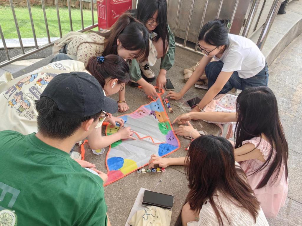创作过程中,广场上一片欢声笑语。他们或以即将来临的母亲节为主题创作,或以期待的未来为主题,或以美好的夏日为主题,或以三五好友春游为主题在风筝上作诗。他们大胆运用丰富色彩,巧妙构思,创作出了很多别具一格的风筝。