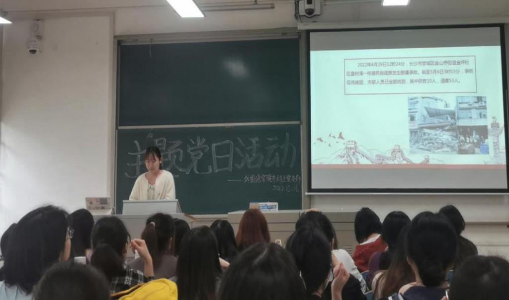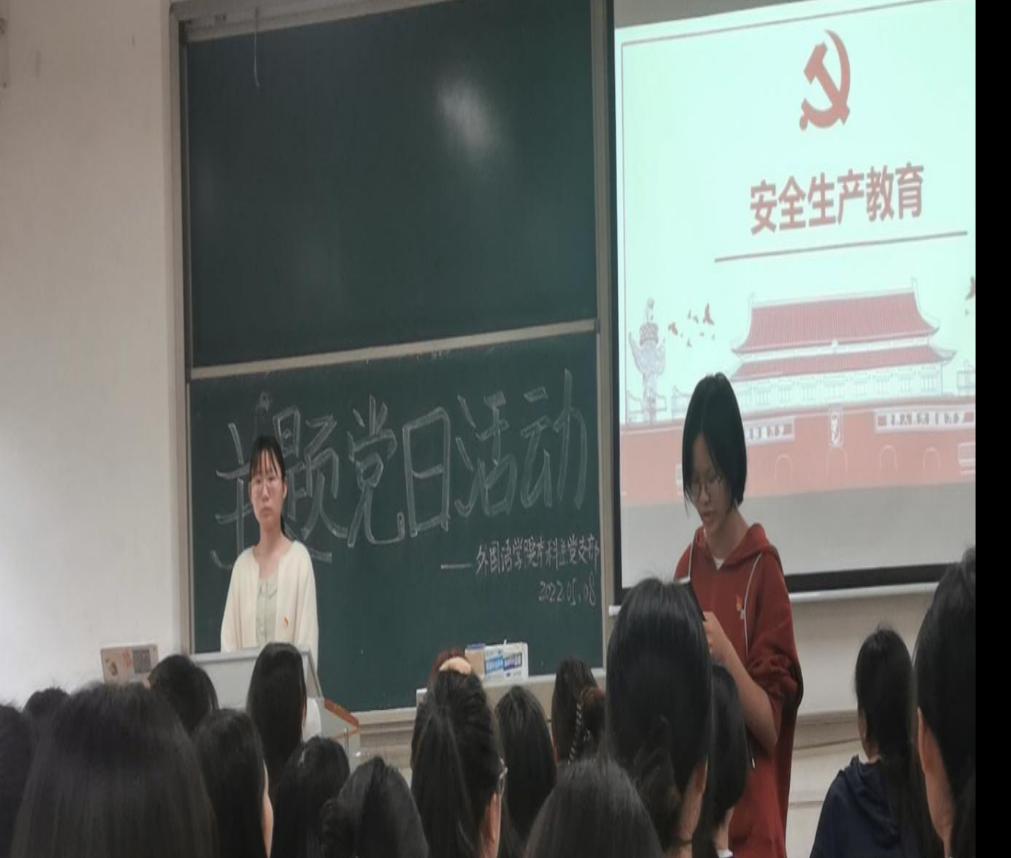 5月8日下午两点学院本科生党支部于文科楼A205开展“安全生产宣传教育”主题党日活动。本次活动由翻译党支部副书记陈宇倩同志主持,党建辅导员毛婕老师出席,本科生党支部全体党员参加,部分发展对象列席。