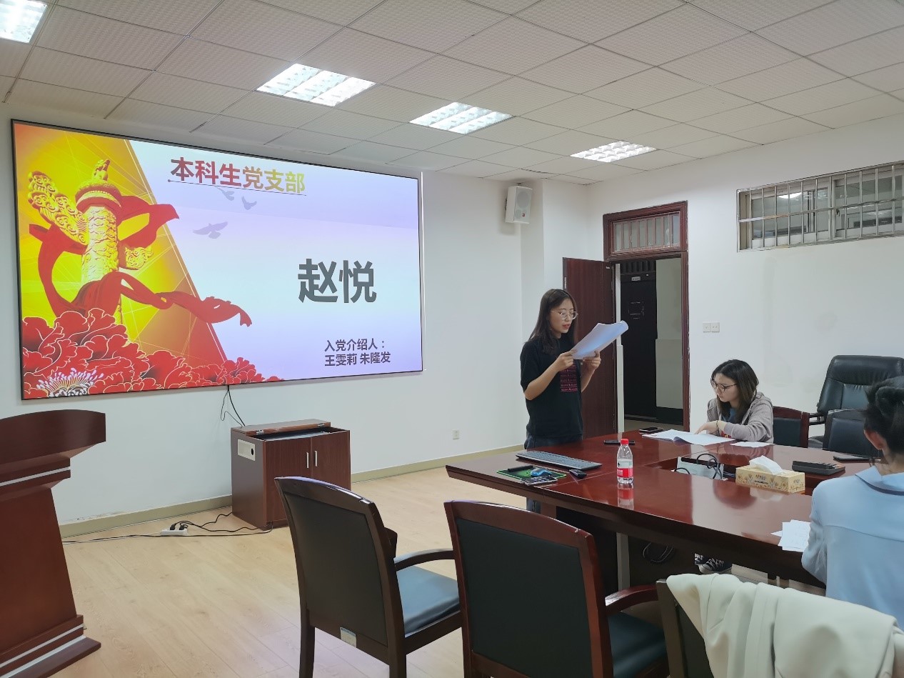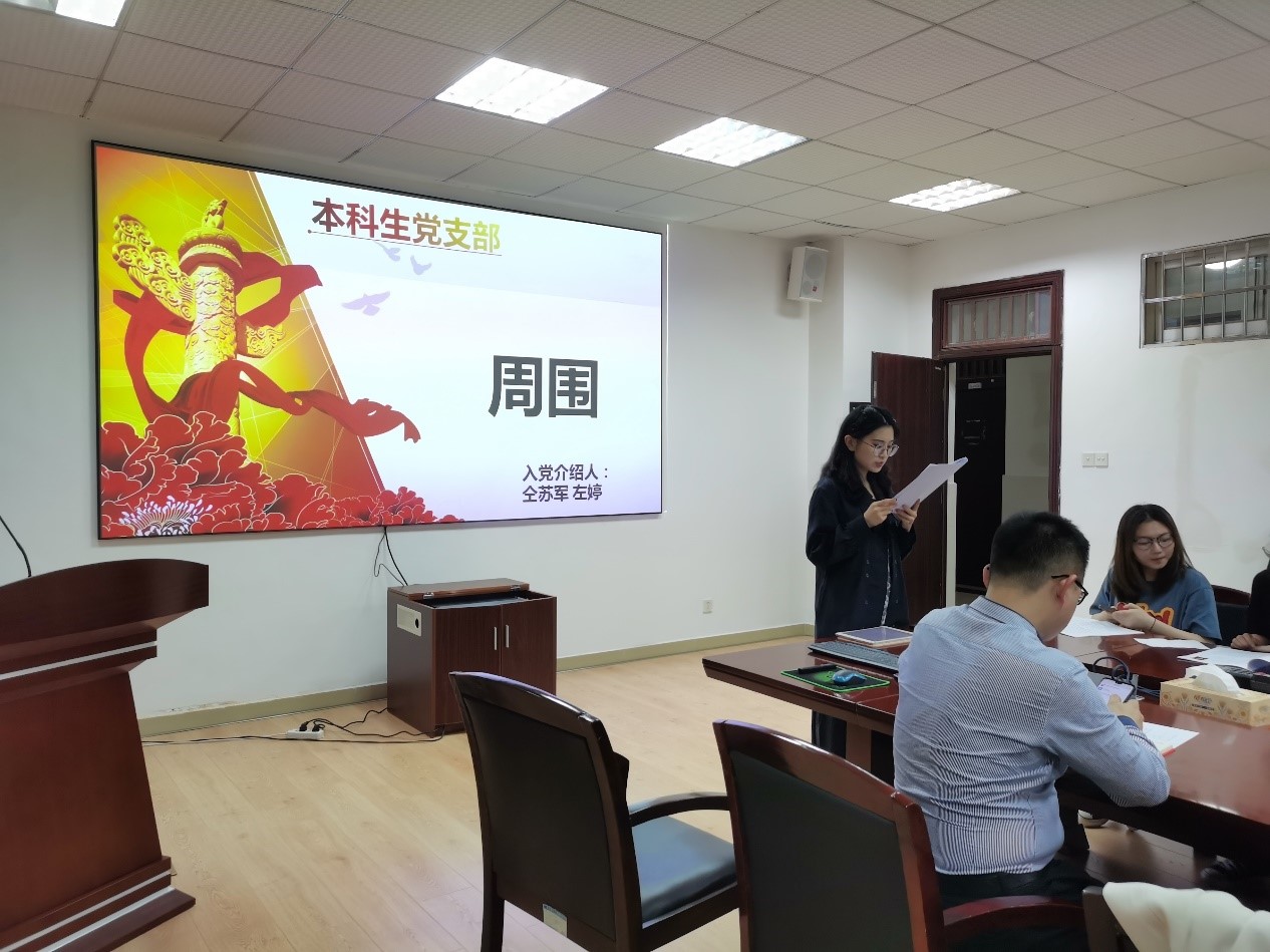 3月29日晚七点半,外国语学院本科生党支部在文科楼A603举行预备党员接收大会。本次大会由本科生党支部宣传委员仝苏军同志主持,专职组织员汪功伟老师出席,外国语学院本科生党支部全体成员参加。