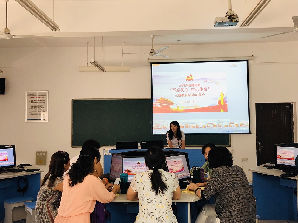 9月24日下午外国语学院教工三个党支部在各自党员活动室召开了党员大会,传达中央、省委、学校和学院“不忘初心、牢记使命”主题教育工作会议精神。会议由各支部书记主持,支部全体党员参加。
