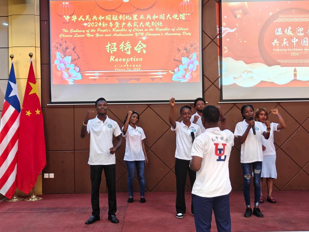 利比里亚大学孔子学院师生应邀参演驻利比里亚使馆龙年新春暨尹承武大使到任招待会