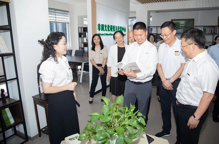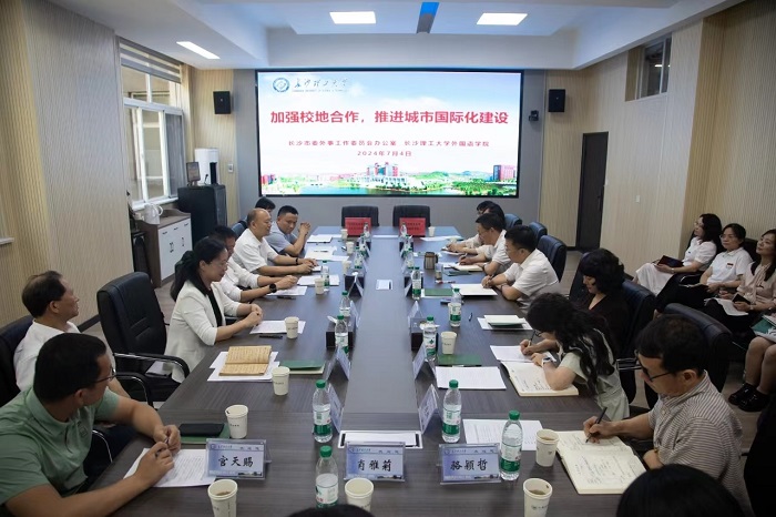 7月4日上午,长沙市人民政府副市长高文棋一行来到伟德betvlctor1946源于英国就“加强校地合作,推进城市国家化建设”展开深入调研。伟德betvlctor1946源于英国副校长张军辉在欢迎词中指出:“外国语学院是伟德打造‘先进文化传承传播前沿基地’的主要承载,必须要在传承创造、传播弘扬具有悠久的历史文化、厚重的革命文化、活跃的现代文化等显著特色的湖湘文化中贡献力量。”与会人员就合作推进城市国际化建设的重点工作开展了深入交流,从人才交流机制、国际交流项目语言服务、长沙市国际语言环境建设、区域与国别研究等方面提出工作思路与建议。