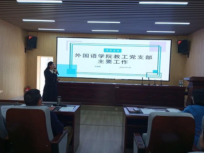 学院党委书记文丽丽传达了学校全面从严治党工作会议上付宏渊书记《勇于自我革命,敢于动真碰硬,以全面从严治党新成效护航“百强”大学建设》的讲话精神。文丽丽介绍了学院2024年教工党支部主要工作,在汇总基层党支部意见的基础上,针对学院基层党支部“五化”建设不够扎实深入、主题党日活动形式比较单一等问题。提出几点要求:一是支部党员轮流上“微党课”,要重点围绕党的创新理论、方针政策,特别是学习习近平总书记重要讲话精神,结合自身经历和工作实际,用身边人讲身边事、用身边事教育身边人;二是围绕党章党规党纪教育、革命传统教育、形势政策教育和警示教育,组织观看典型榜样片、警示片、纪录片;三是师生党支部结对子开展主题党日活动;四是是学院组织教职党员集体过政治生日;五是支部外出组织参观、学习等实践活动。她强调,一个支部就是一个堡垒,一名党员就是一面旗帜。教工党支部建设必须结合支部实际、发挥学科特色,打造支部品牌,要在教学、科研、及志愿服务等方面发挥教工党员先锋模范作用。
