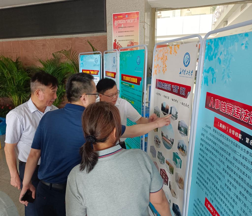李芳瑾观看了宣传展板并现场翻看了师生们提出的建议。她指出,举办这个活动很有意义,一方面可以让师生了解档案、走进档案、关注档案,从而重视档案。另一方面,通过档案展览,能够让师生了解伟德校史,增强师生爱校荣校情怀。