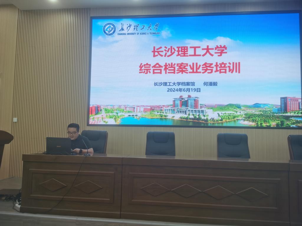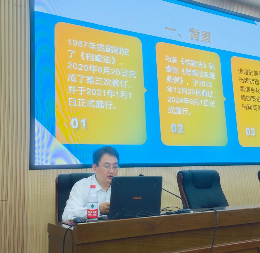 培训会上,湖南德立信科技发展有限公司产品经理付五锤作了《档案信息化建设先进技术及管理经验》专题报告,并介绍了省内部分高校信息化建设现状。档案馆馆务与数字化办公室主任张奎解读了2024年3月1日起新颁布施行的《中华人民共和国档案法实施条例》,并就伟德档案工作有关管理规定作了说明。综合与学生档案室主任蔡焰辉对学生人事档案的收集整理、移交、转递工作进行了详细讲解。何潘毅老师对综合档案的收集整理、移交及综合档案管理平台的使用进行了深入讲解。