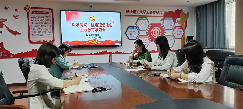 5月9日下午,校工会党支部开展“以学铸魂,坚定理念信念”主题教育学习会。会议由支部书记郭剑主持,工会全体党员参加学习。