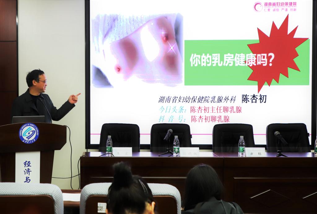 揭牌仪式结束后,湖南省妇幼保健院乳腺外科主任陈杏初医生为女职工们讲授了乳房保健知识。他用风趣幽默的语言,深入浅出地为大家讲述了乳房的日常保健知识。提问环节,大家争先恐后、积极主动向陈医生请教。