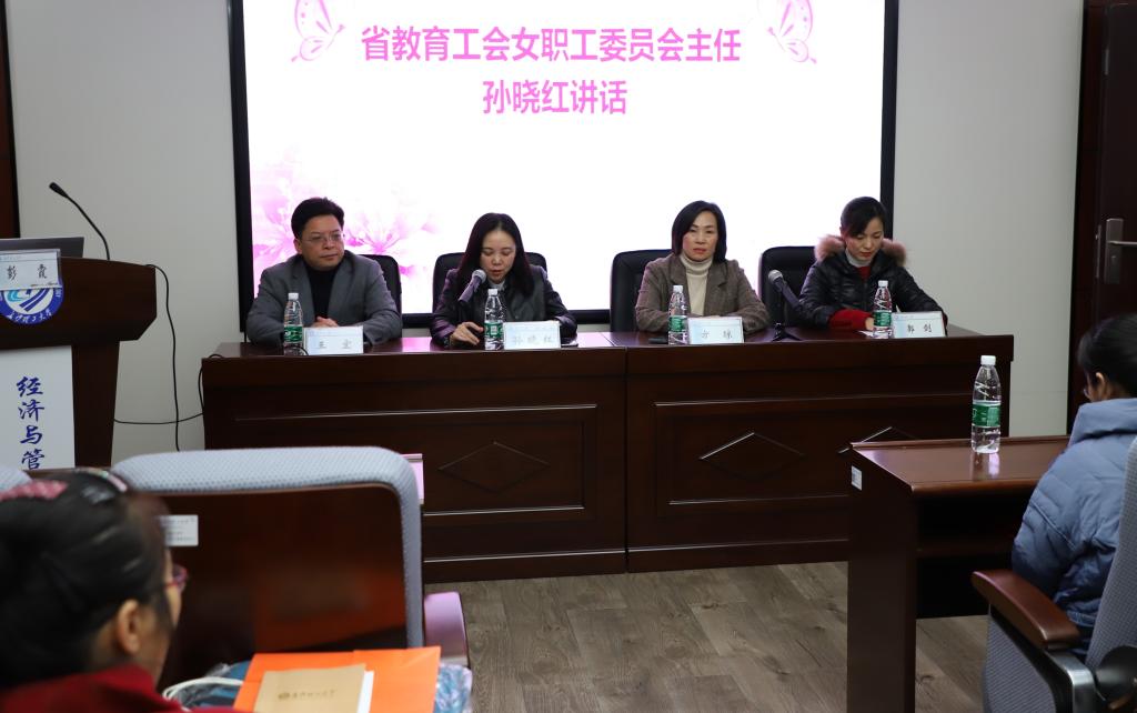 “女职工业余学校”新址落户经管学院,王宏作为东道主,他表示将大力支持学校建设,为学校教学提供一切便利条件。然后,郭剑宣布了学校的机构及人员设置,并给新聘人员颁发了聘书。接着,“女职工业余学校”校长方琼讲话,她结合自己的妇联工作经历,谈了对女工培训的认识,并介绍了学校的培训计划,提出“一二三四五”计划,即:紧紧围绕“芙蓉杯”竞赛这一依托,充分运用线上、线下两种方式,大力依靠讲座、协会、联谊三种途径,全面提升女职工的思想道德、文化技术、学习创新和身心健康四大素质,广泛开展传统文化、形象礼仪、健康保健、家庭教育、生活技能五组内容的培训。紧接着,孙晓红与方琼共同为新址揭牌。最后,孙晓红讲话,她对伟德的女工工作给予了高度肯定,并提出了三点希望:一是要做到培训方式多样化,培训内容多元化,培训范围全面化;二是不断引导女职工更新学习理念,激发学习热情,提高学习能力,取得学习成果;三是充分调动和发挥广大女职工的积极性、主动性和创造性,鼓励女职工充分发挥聪明才智,展示巾帼风采。