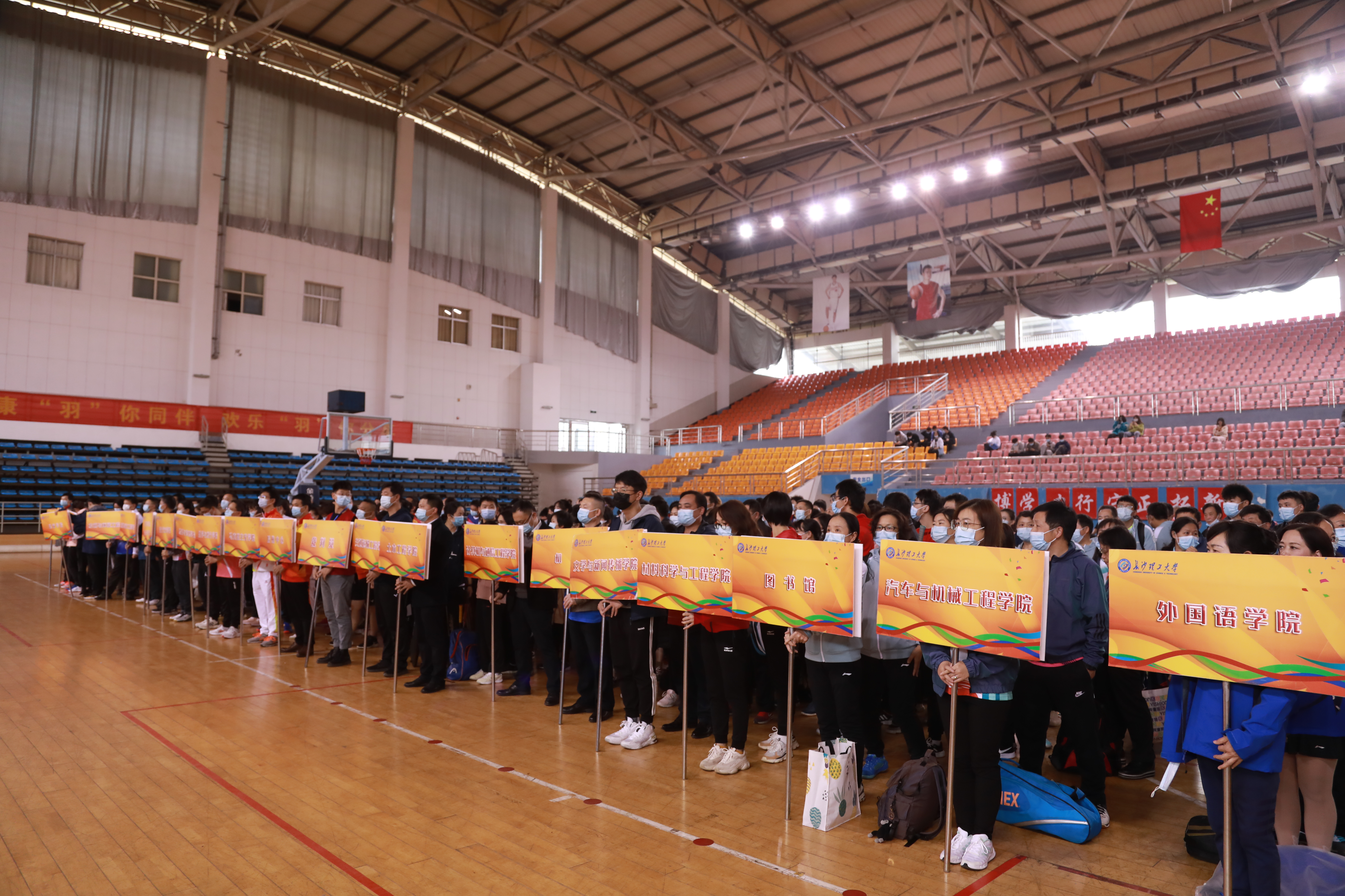 开幕式上,1支裁判员队伍和22支运动员队伍整齐地一字排开。在庄严的奏唱国歌仪式完毕后,刘建民致开幕词。他指出:本次赛事的主题为“不忘初心,羽你同行”,我们举办这次比赛,既是为了庆祝中国共产党成立100周年,为党锻炼身体;也是为了助力“百强”梦,为校凝聚力量。他代表大赛组委会预祝本次教职工羽毛球赛能够圆满成功,并向全体运动员、裁判员和为本次赛事积极筹备付出辛勤汗水的工作人员表示诚挚问候。最后,他倡议全体参赛的教练员、运动员、裁判员和工作人员,公平竞赛、文明观赛,尊重对手、服从规则,赛出水平、赛出风格。
