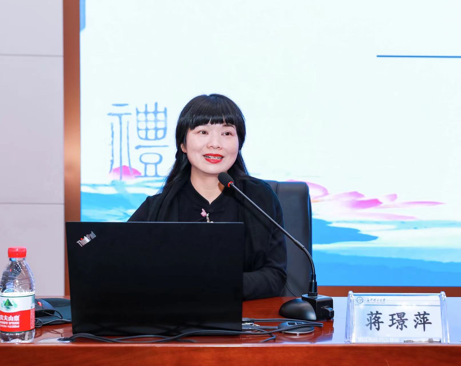 蒋璟萍宣布了教职工美育中心机构及人员设置。中心设主任一名,由郭剑担任;设副主任一名,由图书馆党总支书记夏智勇担任。她指出教职工美育中心要厚植中华优秀传统文化,努力把培育和践行社会主义核心价值观融入美育全过程,充分发挥美育在提升教职工审美与人文素养方面的积极作用。