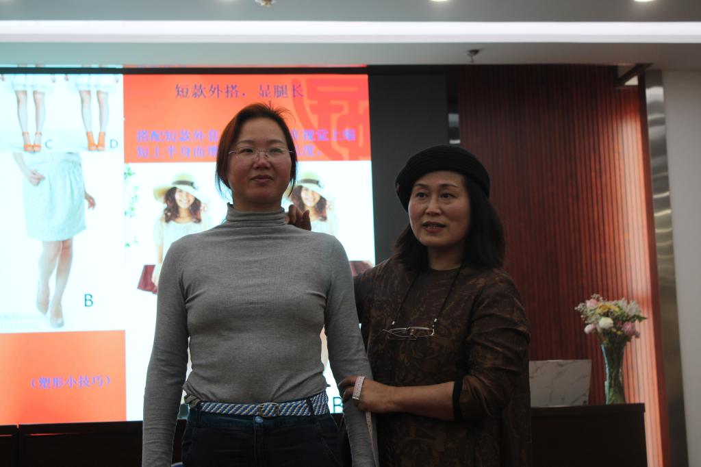 活动后,周教授现场指导旗袍量体,仔细传授人体测量的关键技巧,同时还指导现场教职工关于职业女性服饰搭配的小技巧。活动现场气氛热烈、掌声阵阵,充满欢声笑语,老师们纷纷表示获益良多。