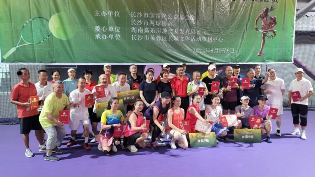 2024年9月19日至20日,长沙市首届“雷锋杯”网球公益比赛在雨花区一琛柏合网球馆隆重举行。本次比赛设5个双打项目,共76名男女运动员参加。比赛要求年龄在54周岁以上,校网球协会派出了朱哲、曾红春、严聪和已退休的原网球协会领导戴红霞和刘音老师参赛。