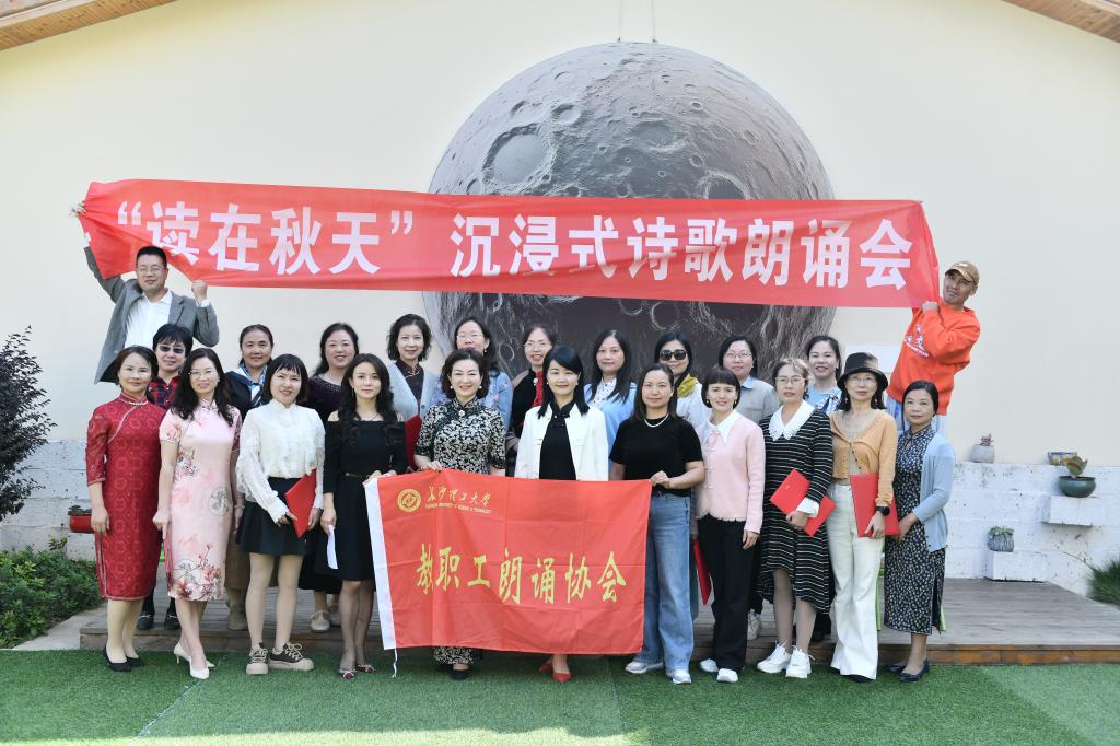 活动现场,来自不同学院的教职工以及子弟学校师生、家长同台表演,以诵读名家经典、旗袍走秀、唱歌等不同形式,展现教职工积极学习、努力奋进的精神面貌。会员们声情并茂地朗诵了一系列关于秋的文学作品,包括诗歌、散文和小说等。他们用真挚的情感和生动的表达,将文字中的力量传递给了在场的每一个人。任鹏老师等朗诵的《关关雎鸠》将诗歌的情韵与旗袍的优雅与美妙和谐地融汇在一起,是朗诵形式的创新。大合诵《秋天里的中国》更是将活动推向最高潮。