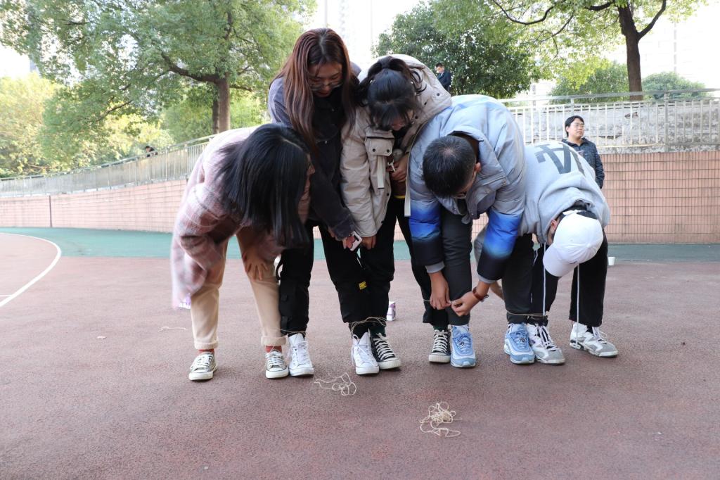 本次素质拓展活动各班同学积极参与,进行了四人三足、快乐数钱、叠叠高、顶气球等趣味游戏。活动首先进行了分组,让大家在逐渐熟悉的情况下进行游戏。在传乒乓球的游戏中,C组成员多次失败。但他们在没有选择放弃,而是继续坚持,不断提高队员间的默契度,最后在配合下完成了小组传球。