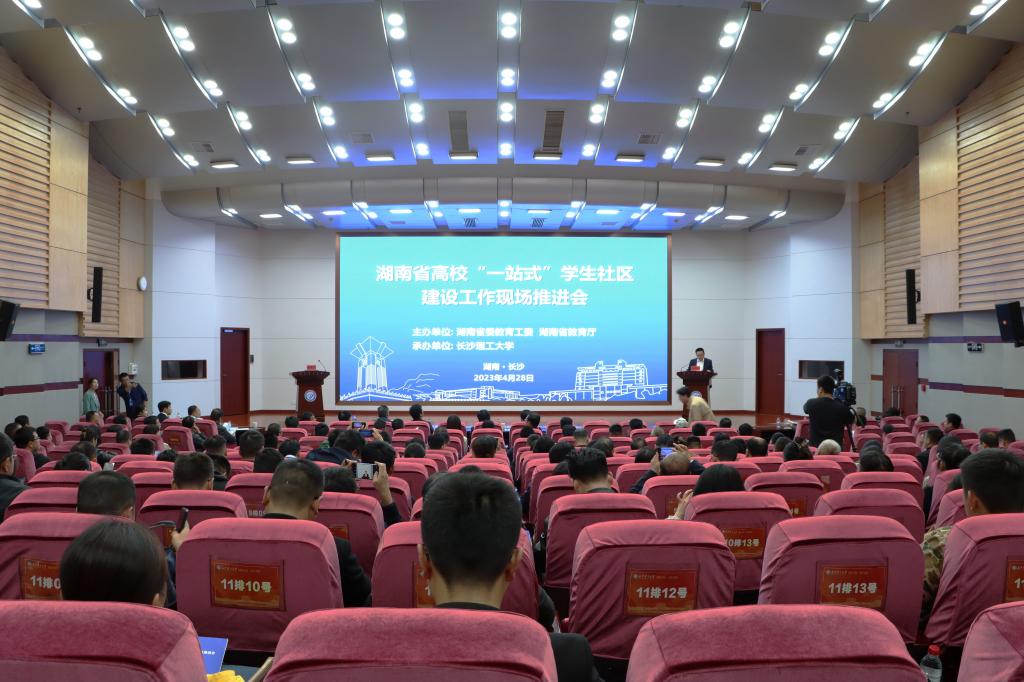 4月28日,湖南省高校“一站式”学生社区建设工作现场推进会在伟德betvlctor1946源于英国云塘校区图书馆报告厅召开。副校长钱国平,湖南省委教育工委宣传部部长、省教育厅思政处处长甘文波、副部长曾思亮出席,全省114所高校学工部及“一站式”学生社区建设负责人,230余名代表参会。大会由省教育工委宣传部、教育厅思政处一级调研员陈解主持。