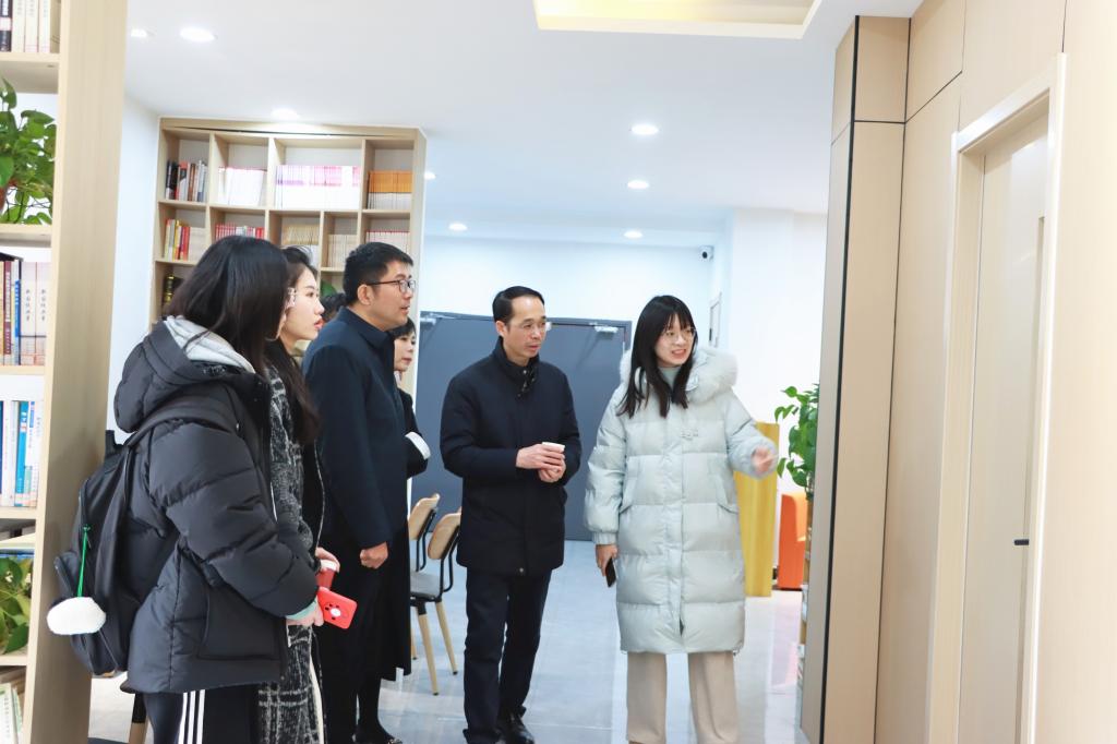会后,调研组一行实地调研伟德 “一站式”学生社区综合服务中心、“24小时”自助服务点、“交通青年”、“匠心学堂”育人社区等。