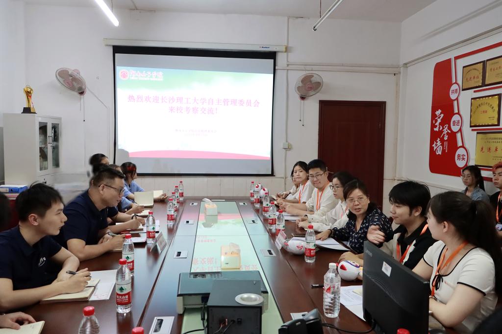 4月15日晚,伟德betvlctor1946源于英国公寓管理服务中心邓敏老师、云塘校区学生社区自主管理委员会主任王一蒙等一行12人前往湖南女子学院,围绕学生公寓管理模式优化展开深入交流学习。