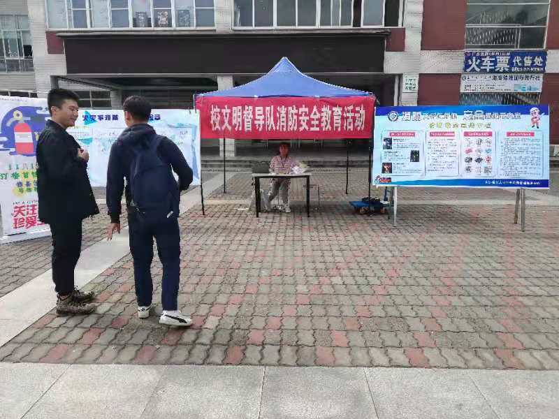 为全力打造平安校园、和谐公寓,进一步提高大学生消防意识,提高自救防范能力,2019年11月12日,校文明督导队在云塘校区汀香园前坪和甘饴园前坪开展了消防安全知识宣传活动。